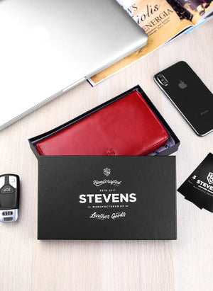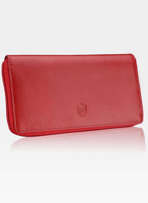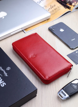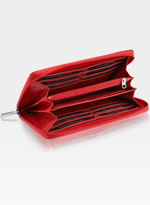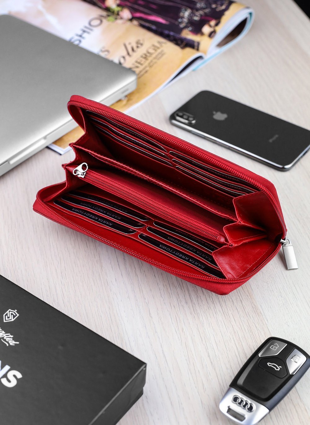 Sieviešu ādas maks STEVENS sarkans ar RFID aizsardzību un rāvējslēdzēju