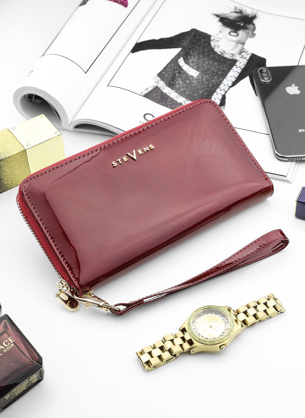 Sieviešu ādas maks STEVENS sarkans ar RFID aizsardzību