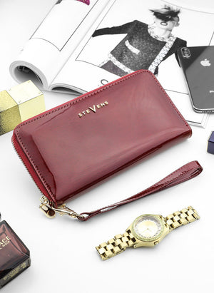 Sieviešu ādas maks STEVENS sarkans ar RFID aizsardzību D1881