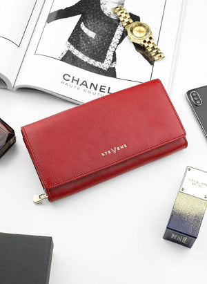 Sieviešu ādas maks STEVENS sarkans matēts D1878