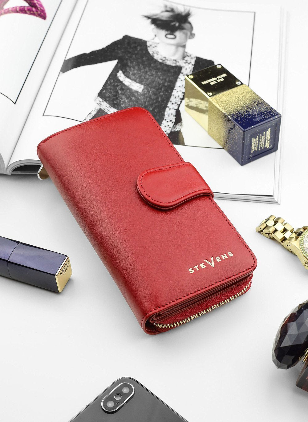 Sieviešu ādas maks STEVENS ar rāvējslēdzēju un RFID aizsardzību