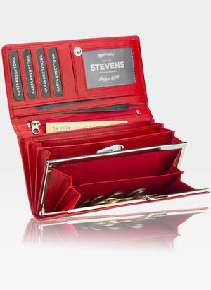 Sieviešu ādas maks "STEVENS" Z03-099 pagarināts sarkans ar RFID aizsardzību D1811
