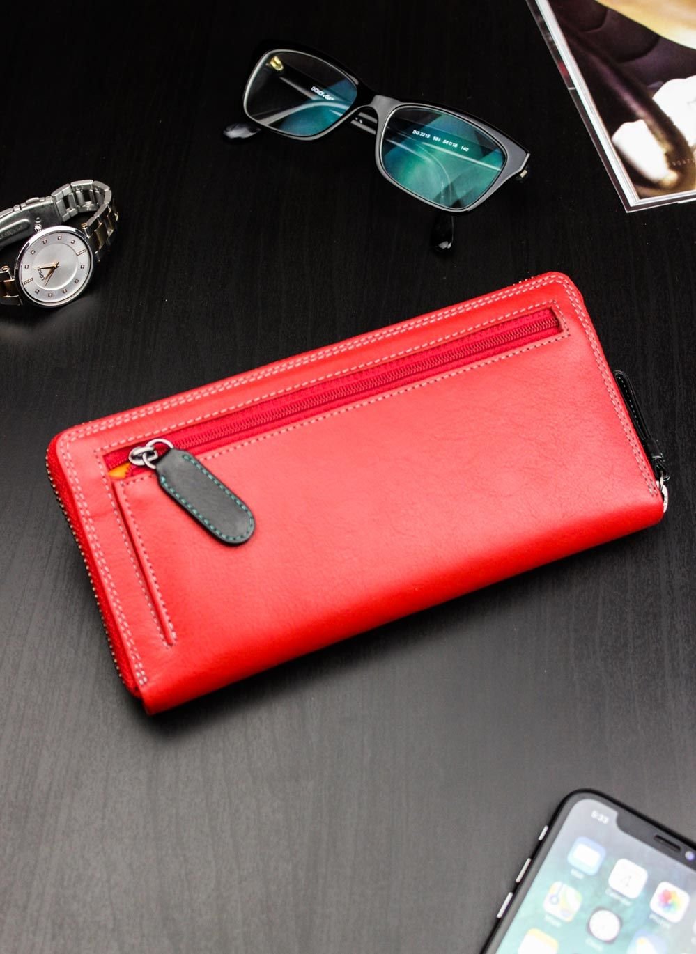 Sieviešu ādas maks Visconti SP79, sarkans