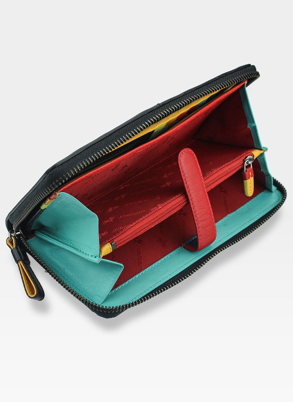 Iepazīstinām ar ekskluzīvu sieviešu maku no britu zīmola Visconti SANTORINI kolekcijas. Šis elegantais maks, kas izgatavots no melnas īstas ādas ar varavīksnes šuvēm, ir lieliski piemērots pārliecinātām un enerģiskām sievietēm, kuras vēlas paust savu unikālo stilu.