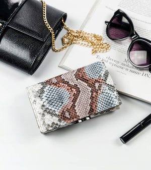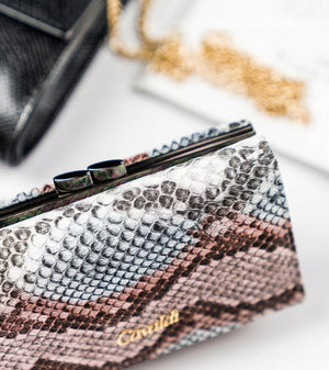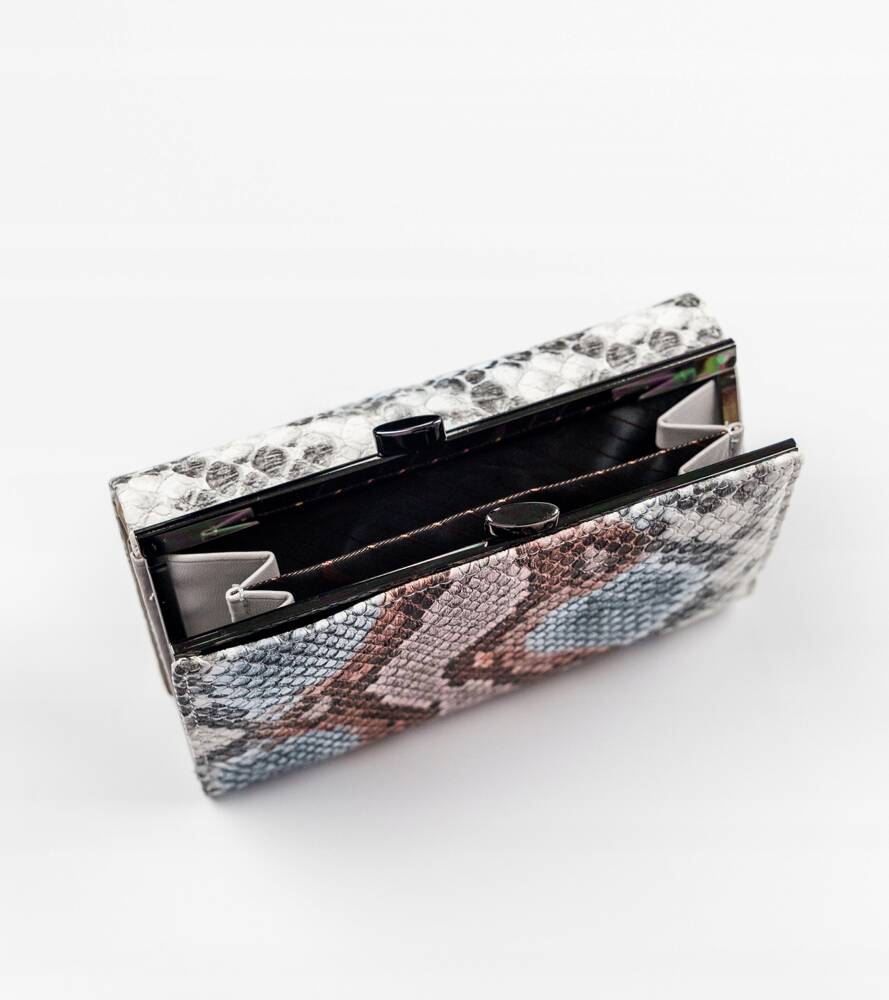 Šis sieviešu maks ir izgatavots no augstas kvalitātes dabīgas un organiskas ādas. Iekšpuse ir oderēta ar dabīgu ādu, bet ārpuse ir izgatavota no krāsainas eko ādas ar tekstūru, kas atgādina čūskādu.