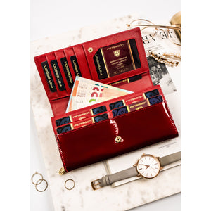 Sieviešu maks, sarkans, īsta āda, RFID sistēma D1629