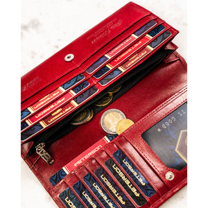 Šis elegantais sieviešu maks ir lieliska izvēle pilsētvides un ikdienas stilam. Izgatavots no augstas kvalitātes īstas ādas, tam ir raksturīga sarkana krāsa, kas piešķir ekskluzivitātes un greznības sajūtu.