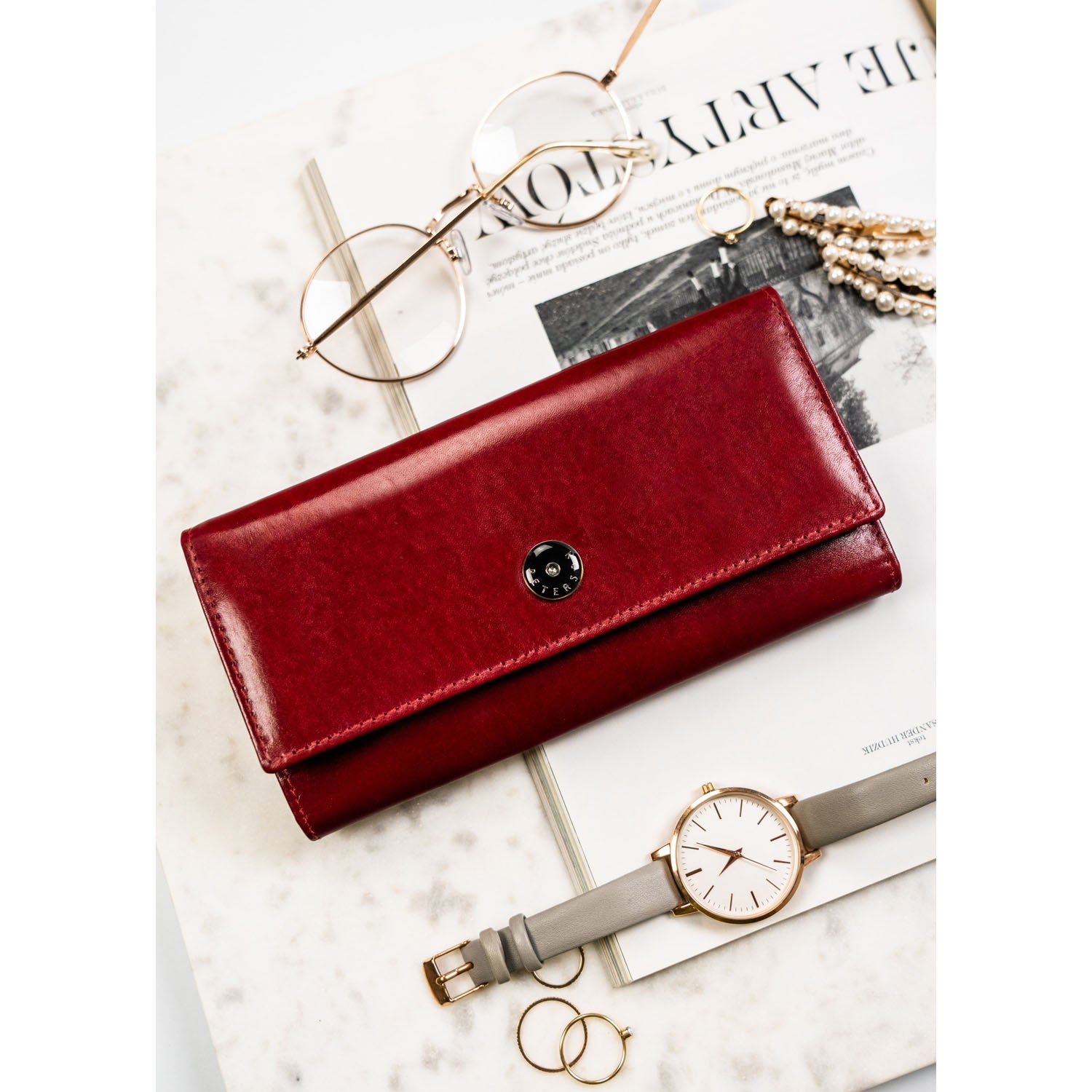 Šis elegantais sieviešu maks ir izgatavots no augstas kvalitātes īstas ādas, kas nodrošina izturību un stilīgu izskatu. Spilgti sarkanā krāsa piešķir unikalitāti un ir ideāli piemērota gan pilsētvides, gan ikdienas stilam.
