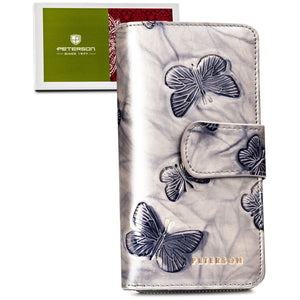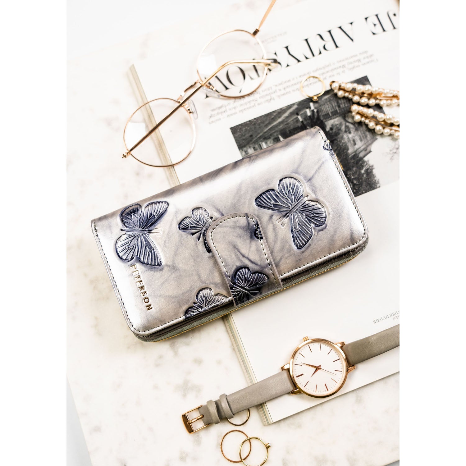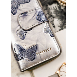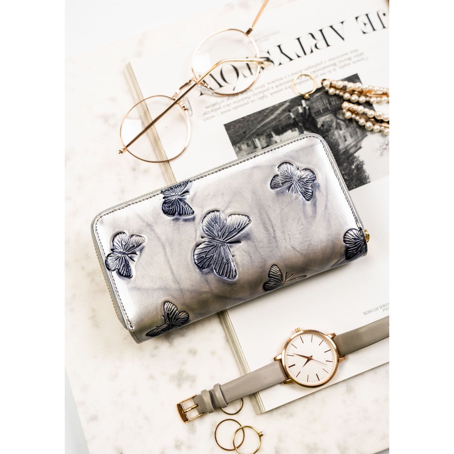Sieviešu maks, sudraba krāsā, īsta āda, ar tauriņiem D1624