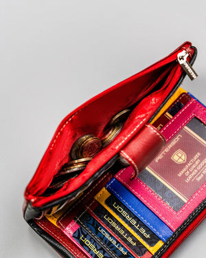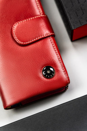 Šis maks ne tikai var ietilpināt daudz karšu, bet arī aizsargā jūsu datus no nevēlamas skenēšanas, pateicoties iebūvētajai RFID aizsardzībai. Tā lielais izmērs ļauj ērti uzglabāt visas nepieciešamās lietas, un sarkanā krāsa piešķir tam izsmalcinātību un eleganci.