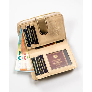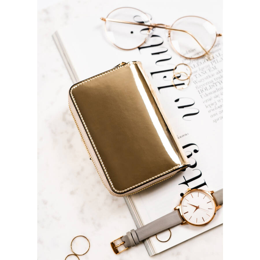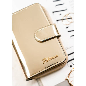Šis elegantais sieviešu maks no Peterson kolekcijas ir izgatavots no augstas kvalitātes īstas ādas, kas nodrošina izturību un stilīgu izskatu. Zelta krāsa piešķir greznību un ekskluzivitāti.