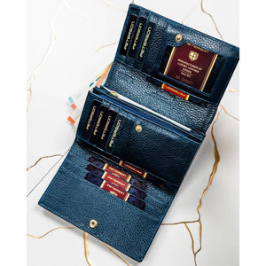 Šis elegantais sieviešu maks no Peterson ir izgatavots no augstas kvalitātes īstas ādas, kas nodrošina izturību un stilīgu izskatu. Zilā krāsa piešķir šim makam atšķirīgu un elegantu izskatu.