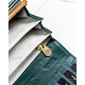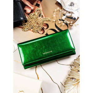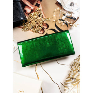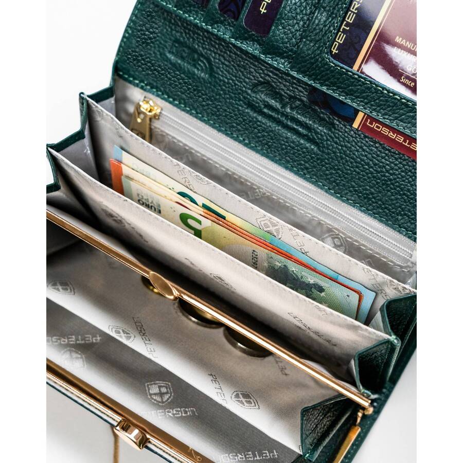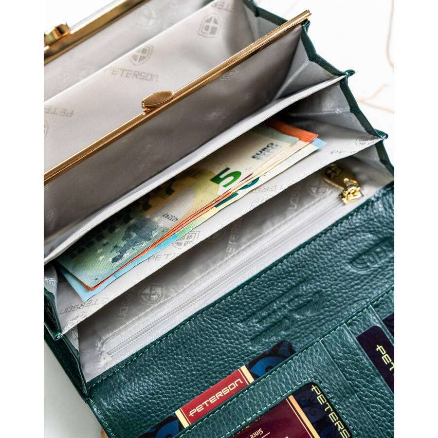 Šis elegantais sieviešu maks no Peterson kolekcijas ir izgatavots no augstas kvalitātes īstas un lakotas ādas. Tā zaļā krāsa piešķir tam ekskluzivitāti un stilu.