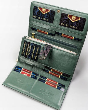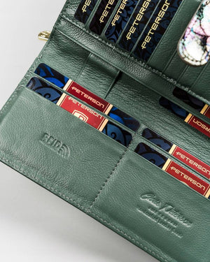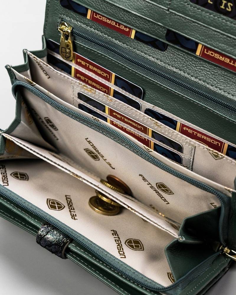 Šis elegantais sieviešu maks no Peterson kolekcijas ir izgatavots no augstas kvalitātes īstas ādas, kas nodrošina izturību un stilīgu izskatu. Zaļais dizains piešķir unikalitāti un labi sader ar dažādiem stiliem.