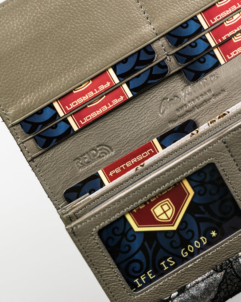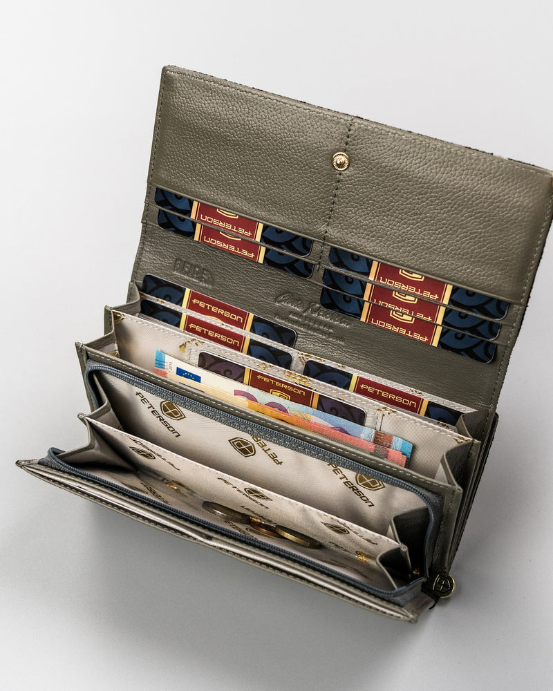 Šis elegantais sieviešu maks no Peterson kolekcijas ir izgatavots no augstas kvalitātes īstas ādas, nodrošinot izturību un stilīgu izskatu.
