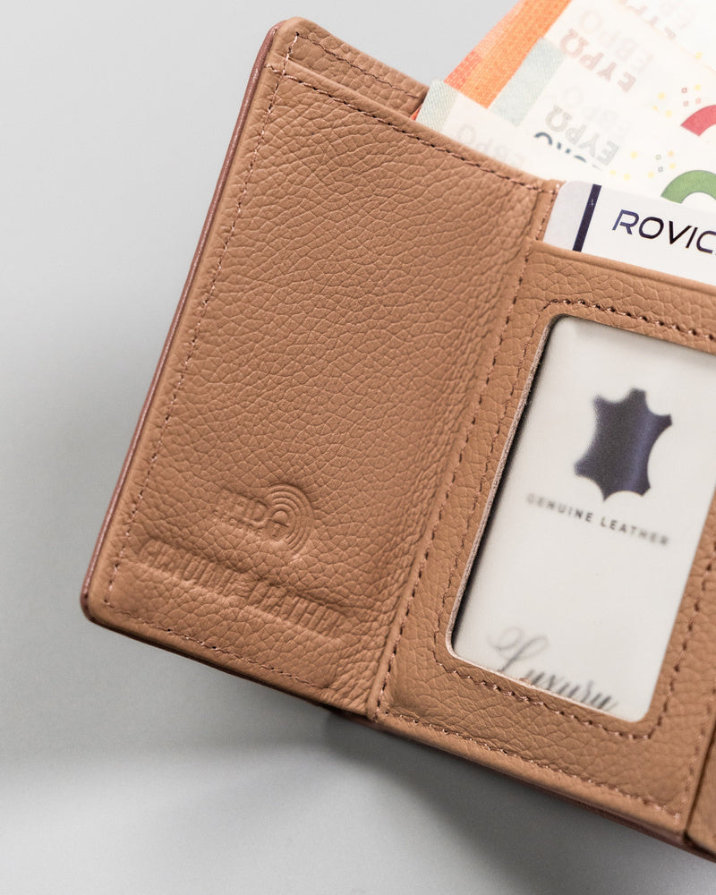 Šis elegantais rozā Rovicky maks ir lieliska izvēle sievietēm, kuras novērtē stilu un funkcionalitāti. Izgatavots no īstas un sintētiskas ādas, tas nodrošina izturību un komfortu. Kompaktais izmērs ļauj to viegli ievietot jebkurā rokassomiņā, un RFID aizsardzība nodrošina papildu drošību jūsu kartēm.