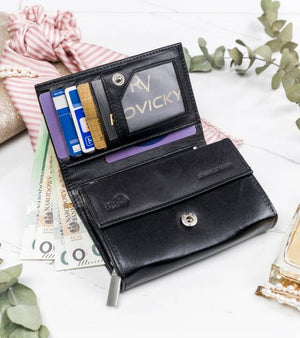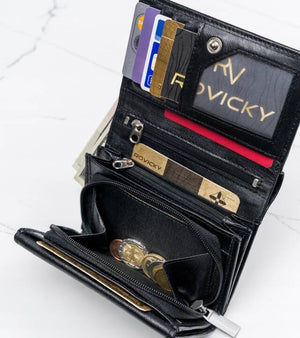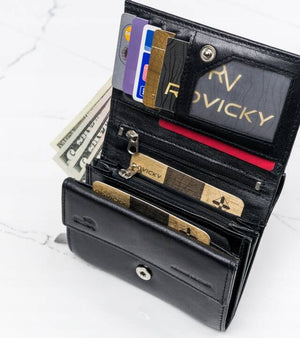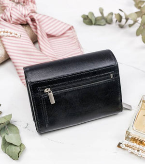 Šis elegantais sieviešu maks no 4U Cavaldi ir izgatavots no augstas kvalitātes īstas ādas, kas nodrošina izturību un stilu. Melnā krāsa nodrošina daudzpusību, tāpēc tas lieliski piestāvēs jebkuram apģērbam. Vidēja izmēra maks ir praktisks un ērts ikdienas lietošanai.