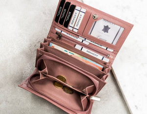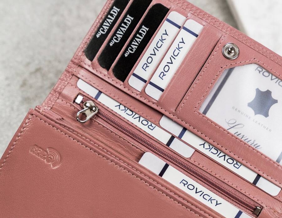 Šis elegantais sieviešu maks no 4U Cavaldi ir lieliska izvēle tiem, kas meklē stilīgu un funkcionālu aksesuāru. Izgatavots no īstas ādas, tas ne tikai izskatās grezni, bet arī nodrošina izturību. Gaiši rozā krāsa piešķir smalkumu, un lielais izmērs ļauj ērti uzglabāt visas nepieciešamās lietas. Pateicoties RFID aizsardzībai, jūsu kartes būs pasargātas no nevēlamas skenēšanas. Makam ir 6-10 karšu nodalījumi un atsevišķs nodalījums monētām, tāpēc viss būs kārtīgi sakārtots.