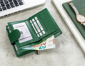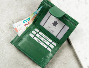 Šis elegantais sieviešu maks no 4U CAVALDI ir izgatavots no augstas kvalitātes īstas ādas, kas nodrošina izturību un stilīgu izskatu. Zaļais dizains piešķir šim makam atšķirīgu un modernu izskatu.