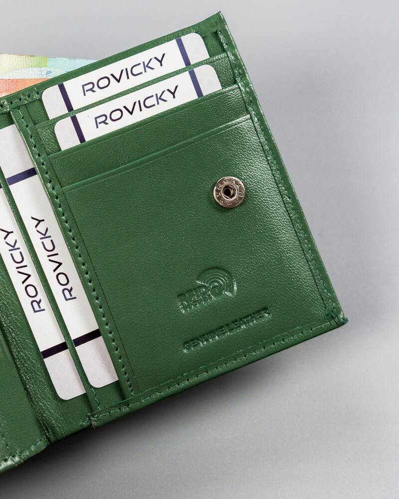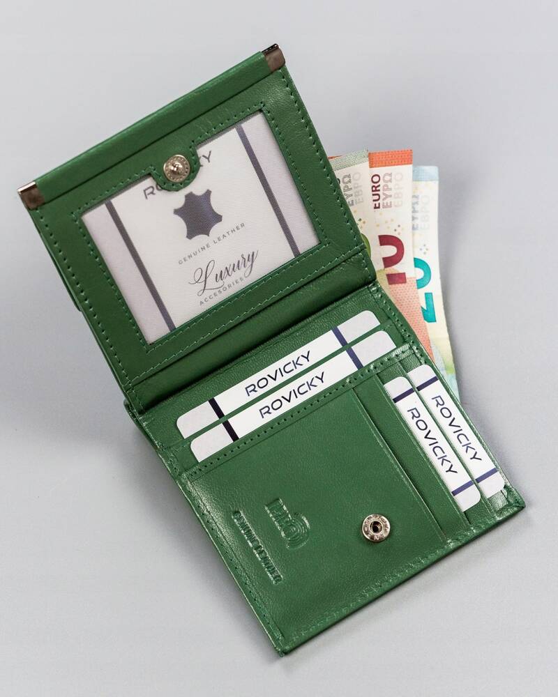 Šis maks ir ne tikai funkcionāls, bet arī drošs, jo tam ir RFID aizsardzība , kas palīdz aizsargāt jūsu kartes no neatļautas skenēšanas. Kompaktais izmērs ļauj to ērti nēsāt rokassomiņā vai kabatā, un zaļā krāsa piešķir unikalitāti un eleganci.