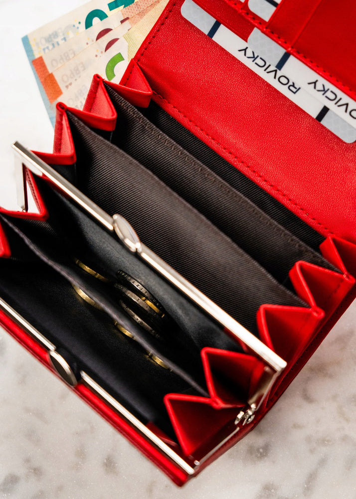 Šis elegantais sarkanais maks no 4U Cavaldi ir lieliska izvēle sievietēm, kuras novērtē stilu un funkcionalitāti. Izgatavots no augstas kvalitātes eko ādas, tas ne tikai izskatās lieliski, bet arī ir izturīgs. Vidēja izmēra makam ir RFID aizsardzība, lai jūsu kartes būtu drošībā. Ar 6-10 karšu nodalījumiem un atsevišķu nodalījumu monētām šis maks ir praktisks un ērts ikdienas lietošanai.