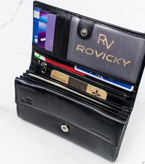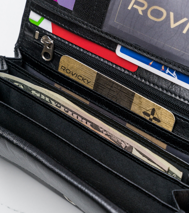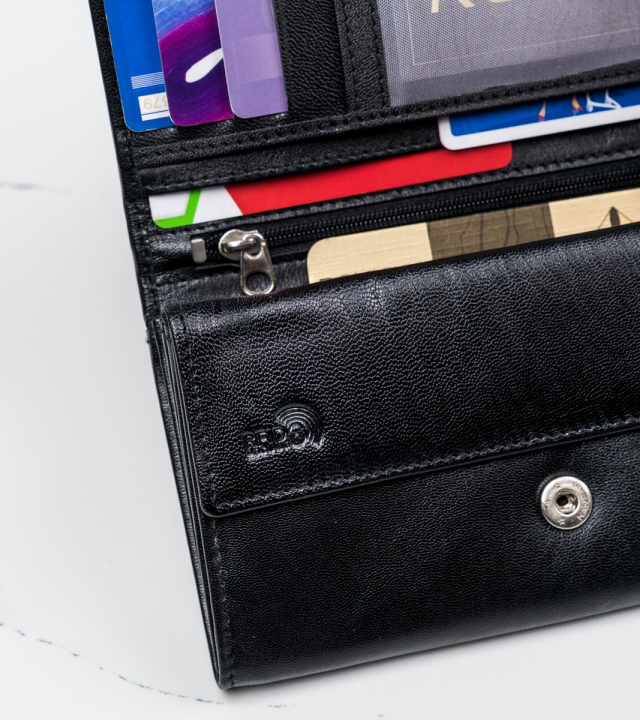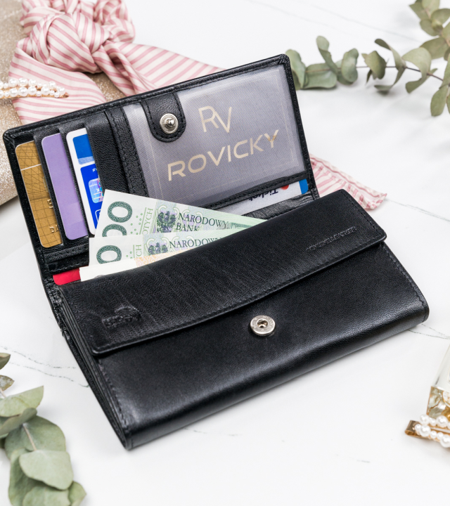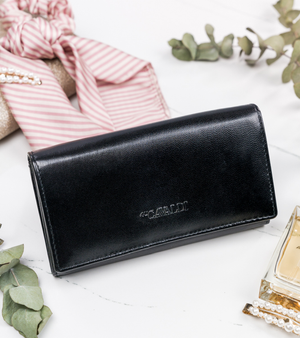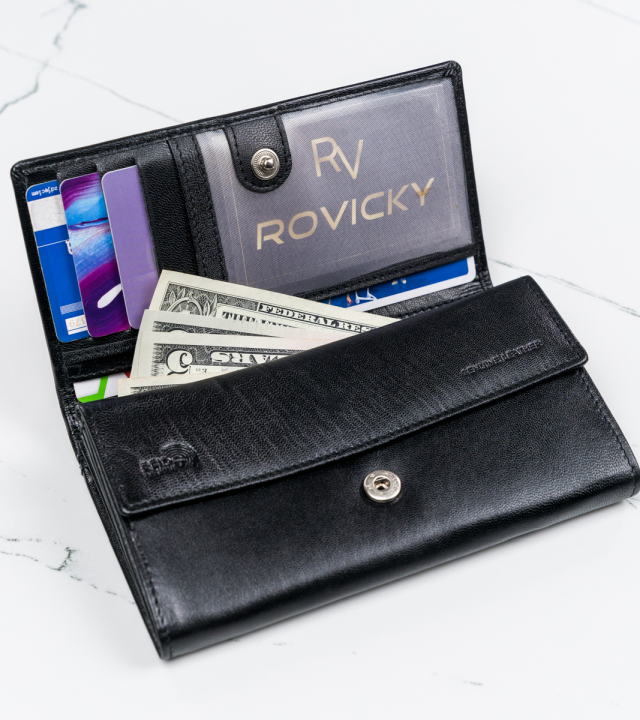 Elegants un funkcionāls sieviešu maks no 4U CAVALDI , izgatavots no augstas kvalitātes īstas ādas. Šis melnais maks ir lieliski piemērots gan ikdienas lietošanai, gan īpašiem gadījumiem.