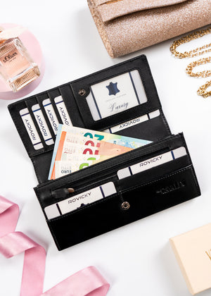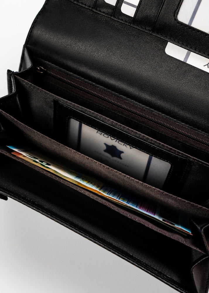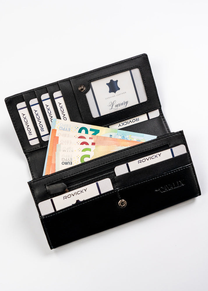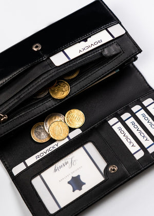 Šis elegantais melnais maks no 4U Cavaldi ir izgatavots no eko ādas, lai nodrošinātu izturību un stilu. Lielais izmērs ļauj ērti uzglabāt visas nepieciešamās lietas, savukārt RFID aizsardzība nodrošina papildu drošību jūsu kartēm. Ar 6-10 karšu nodalījumiem un atsevišķu nodalījumu monētām šis maks ir praktiska un stilīga izvēle ikvienai sievietei.