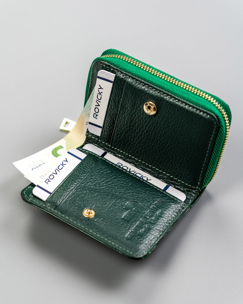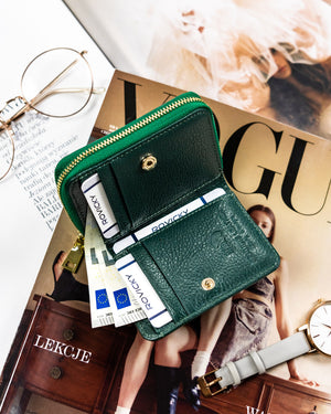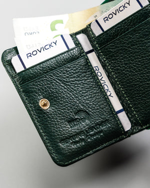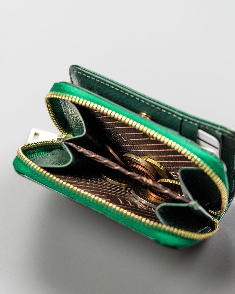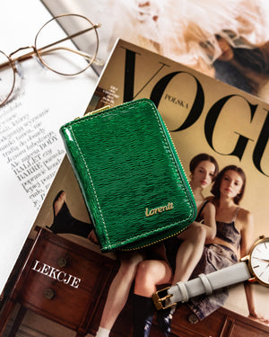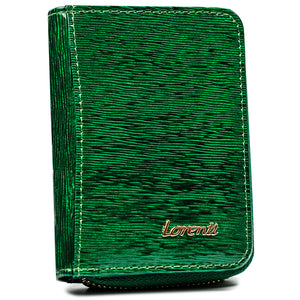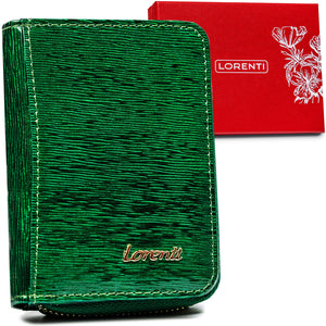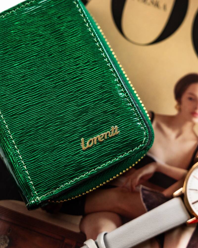 Šis elegantais Lorenti maks ir lieliska izvēle sievietēm, kuras novērtē kvalitāti un stilu. Izgatavots no īstas ādas, tas ir zaļā krāsā, kas piešķir tam unikālu izskatu. Kompaktais izmērs ļauj ērti uzglabāt maku rokassomiņā, un funkcionālie nodalījumi nodrošina ērtu lietošanu.