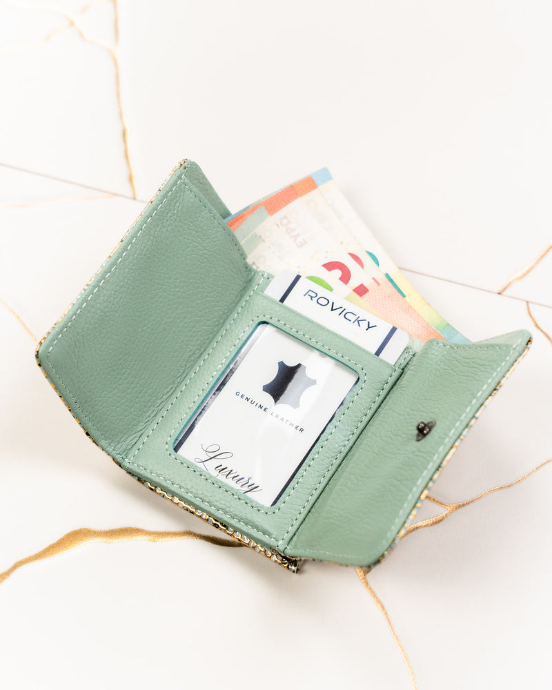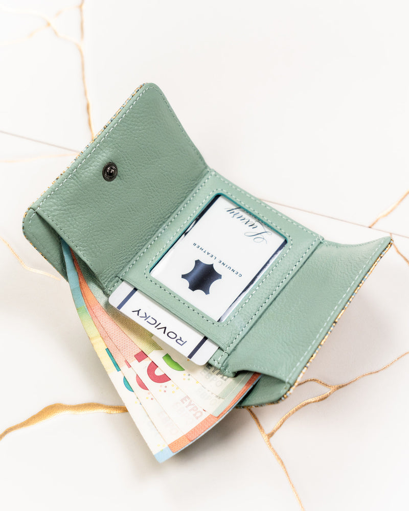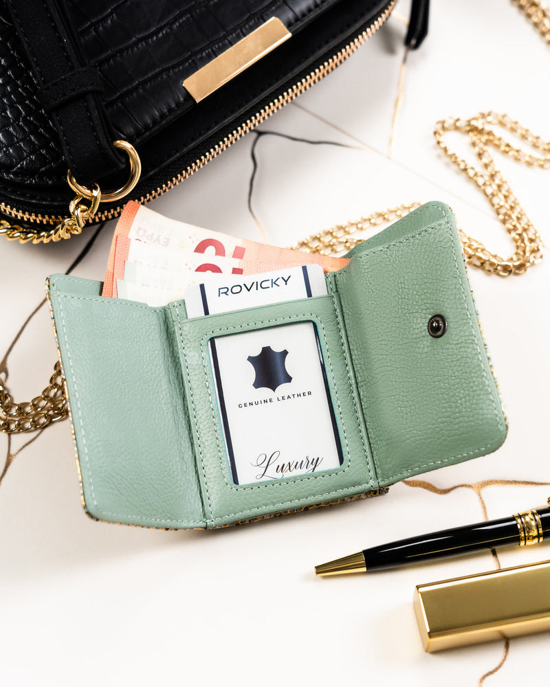 Šis elegantais sieviešu maks ir izgatavots no augstas kvalitātes īstas ādas, kas nodrošina izturību un stilīgu izskatu.