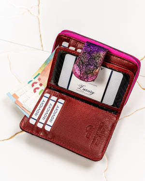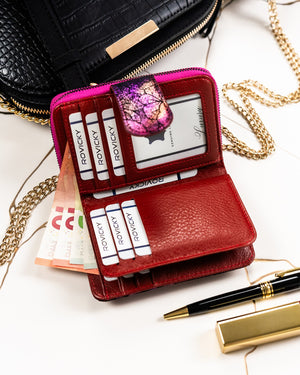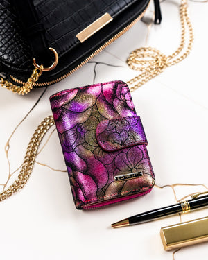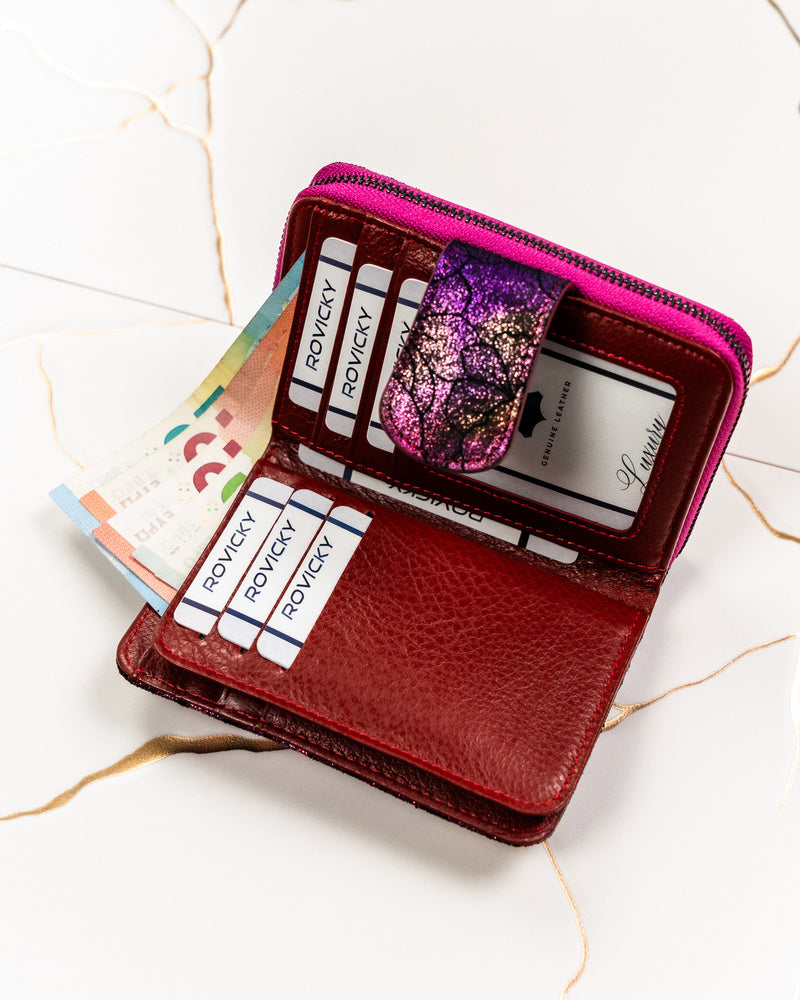 Šis elegantais sieviešu maks ir izgatavots no augstas kvalitātes īstas ādas, kas nodrošina izturību un stilīgu izskatu. Violetā krāsa piešķir tam atšķirīgu izskatu un labi sader ar dažādiem stiliem.