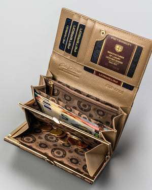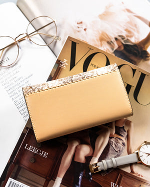 Šis elegantais sieviešu maks, kas izgatavots no īstas ādas, ir lieliska izvēle tiem, kas meklē kvalitāti un stilu. Bēšais dizains piešķir smalkumu, savukārt lielais izmērs nodrošina pietiekami daudz vietas visām nepieciešamajām lietām. Makam ir 1-5 karšu nodalījumi un atsevišķs nodalījums monētām, tāpēc viss būs kārtīgi sakārtots.
