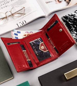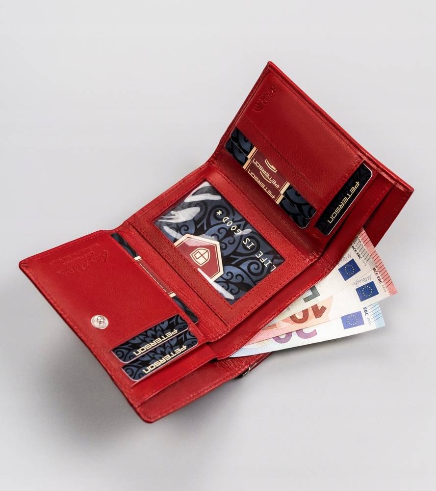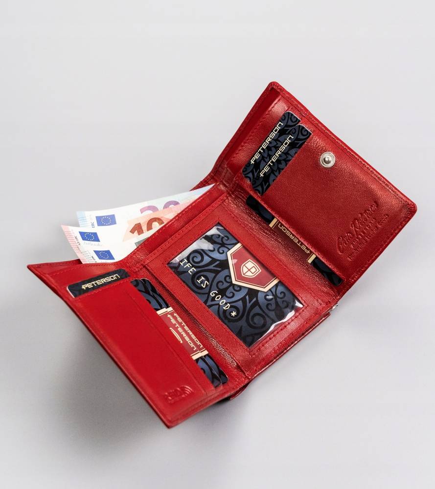 Šis elegantais sieviešu maks no Peterson kolekcijas ir izgatavots no augstas kvalitātes īstas ādas. Sarkanā krāsa piešķir ekskluzivitāti un stilu, savukārt vidējais izmērs nodrošina ērtības ikdienas lietošanā. Makā ir pietiekami daudz vietas kartēm un monētām, padarot to ideāli piemērotu gan ikdienas lietošanai, gan īpašiem gadījumiem.