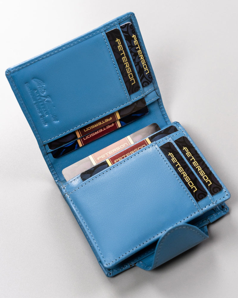 Šis elegantais sieviešu maks no Peterson ir izgatavots no augstas kvalitātes īstas ādas, kas nodrošina izturību un stilīgu izskatu. Zilā krāsa piešķir šim makam atšķirīgu un modernu izskatu.