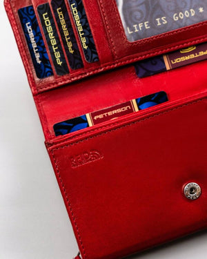 Šis elegantais sieviešu maks no Peterson ir izgatavots no augstas kvalitātes īstas ādas, kas nodrošina izturību un stilīgu izskatu. Pieejams divās klasiskās krāsās: melnā un sarkanā.