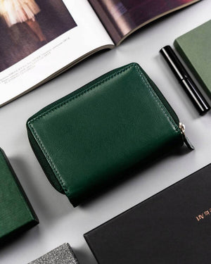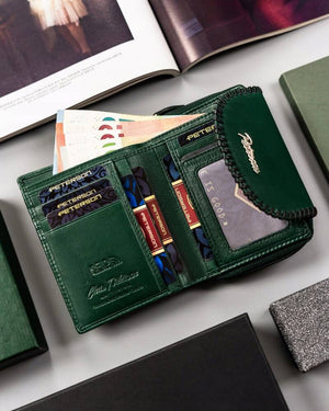 Šis elegantais sieviešu maks, kas izgatavots no īstas ādas, ir lieliska izvēle tiem, kas meklē kvalitāti un stilu. Zaļā krāsa piešķir unikalitāti, un vidējais izmērs nodrošina ērtības ikdienas lietošanā. Makā ir pietiekami daudz vietas kartēm un monētām, padarot to ideāli piemērotu gan ikdienas lietošanai, gan īpašiem gadījumiem.