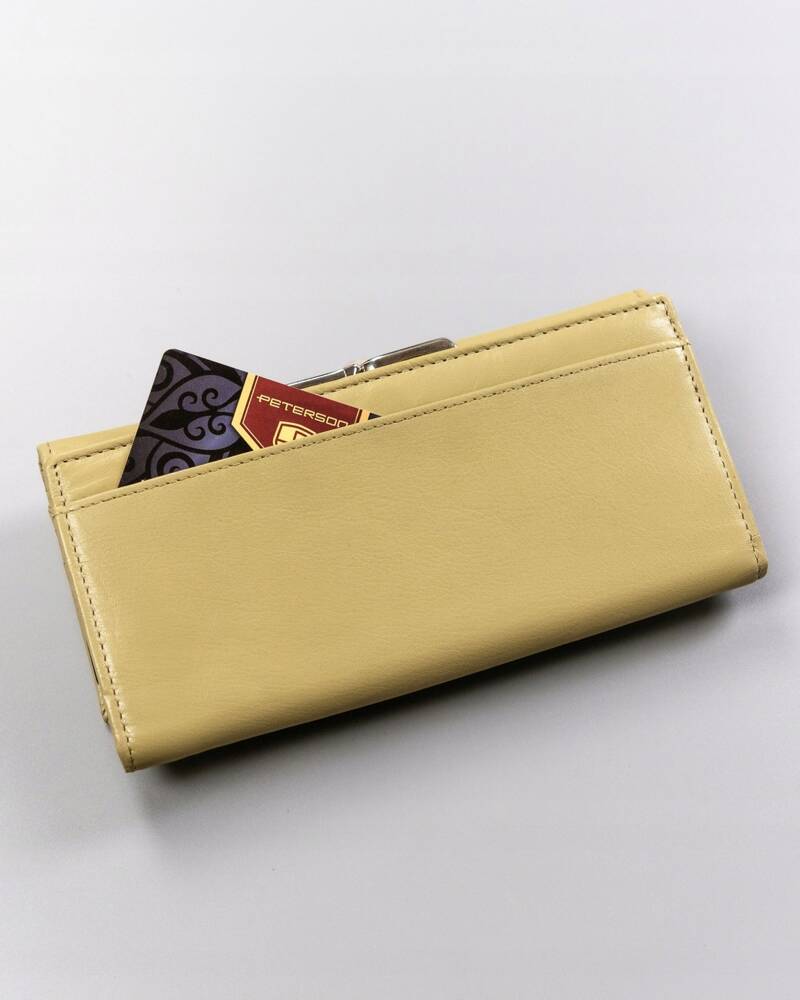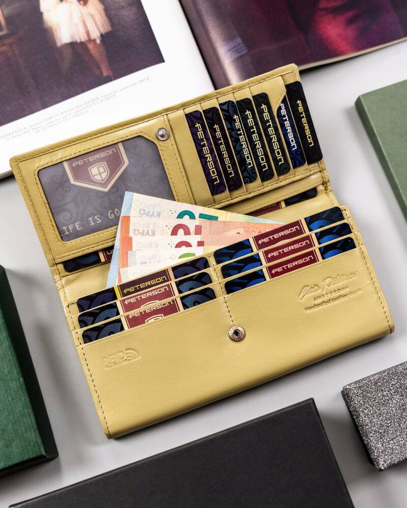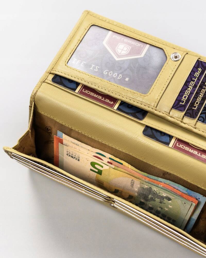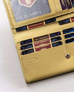 Šis elegantais un funkcionālais sieviešu maks no Peterson ir lieliska izvēle tiem, kas novērtē kvalitāti un stilu. Izgatavots no īstas ādas, tas ne tikai izskatās grezni, bet arī ir izturīgs. Dzeltenā krāsa piešķir izsmalcinātību, un lielais izmērs nodrošina, ka jums būs pietiekami daudz vietas visām jūsu mantām.