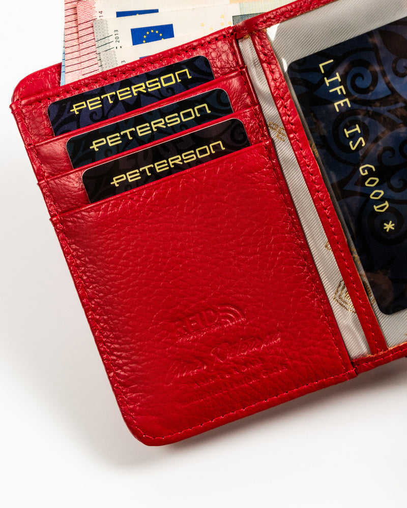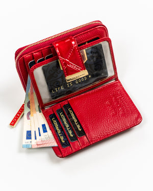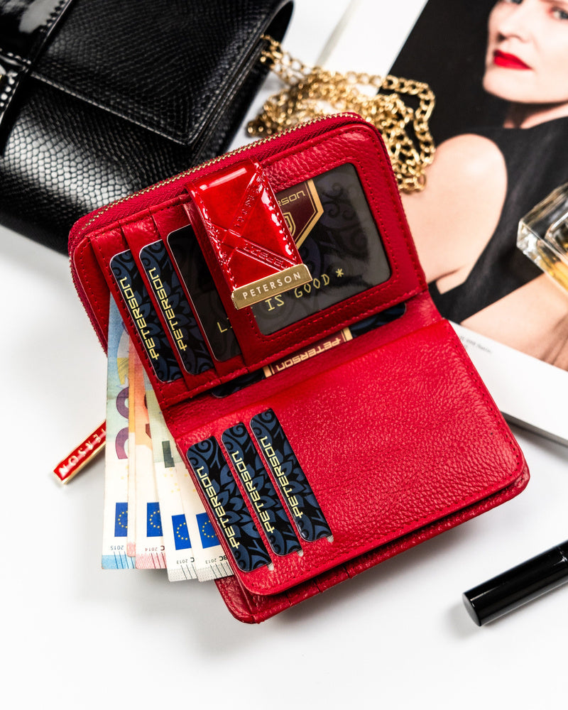 Šis elegantais sieviešu maks, kas izgatavots no īstas ādas, ir lieliska izvēle tiem, kas novērtē kvalitāti un stilu. Sarkanā krāsa piešķir ekskluzivitāti, un vidējais izmērs nodrošina ērtības ikdienas lietošanā. Makā ir pietiekami daudz vietas kartēm un monētām, padarot to praktisku un funkcionālu.