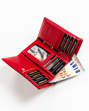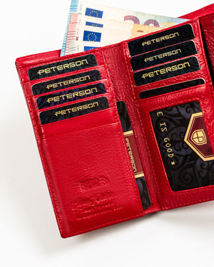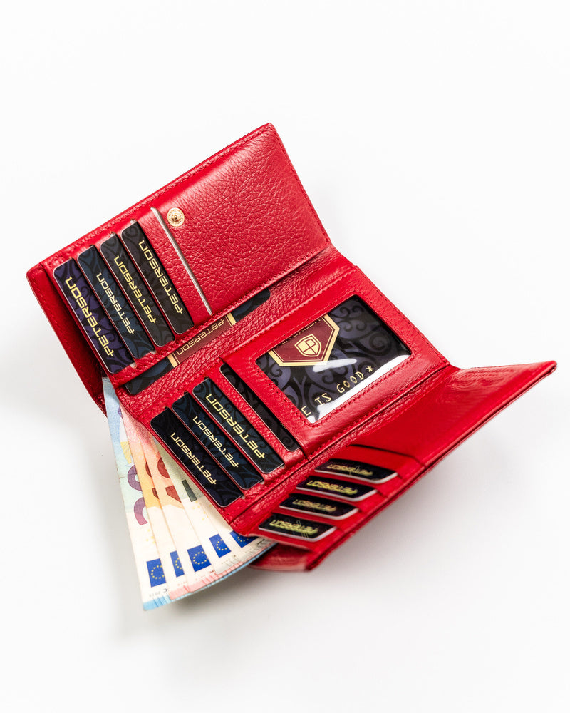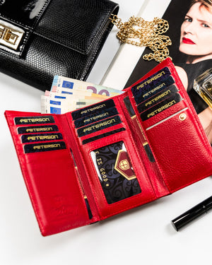 Šis elegantais sieviešu maks no Peterson kolekcijas ir izgatavots no augstas kvalitātes īstas ādas. Sarkanā krāsa piešķir tam ekskluzivitāti un stilu, savukārt vidējais izmērs nodrošina ērtības ikdienas lietošanā. Ar vairāk nekā 10 karšu nodalījumiem un atsevišķu nodalījumu monētām šis maks ir lieliski piemērots gan ikdienas vajadzībām, gan īpašiem gadījumiem.