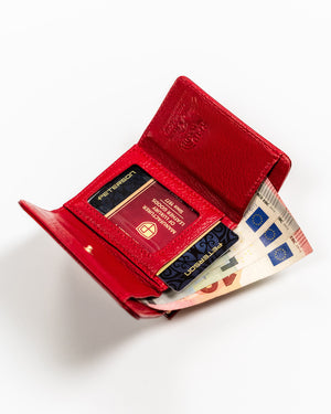 Šis elegantais un kompaktais sieviešu maks, kas izgatavots no īstas ādas, ir lieliska izvēle tiem, kas novērtē kvalitāti un stilu. Sarkanā krāsa piešķir ekskluzivitāti, un praktiskais dizains ļauj ērti uzglabāt kartes un monētas.