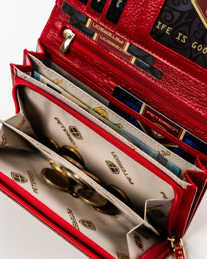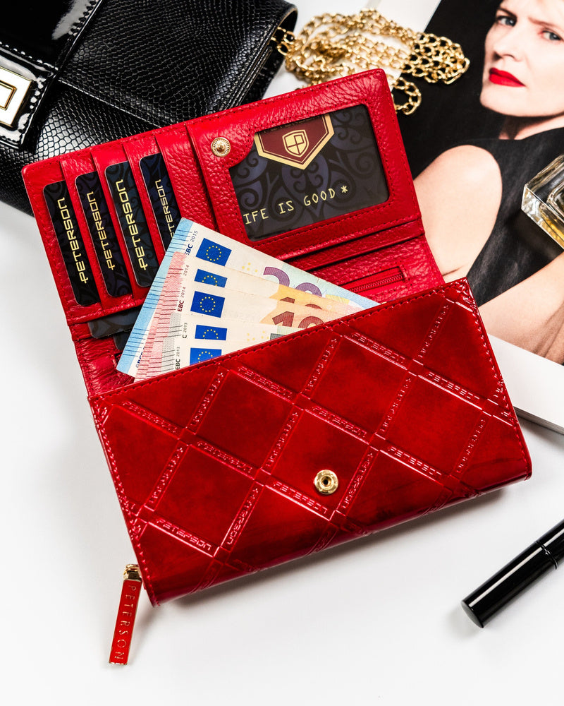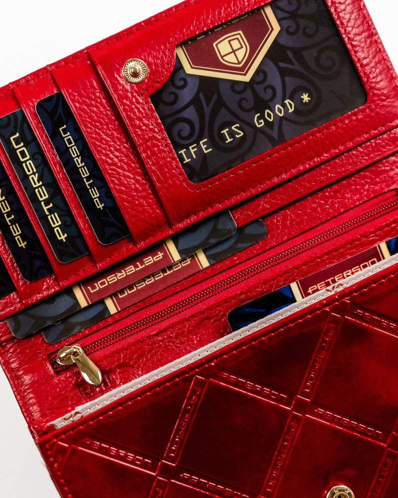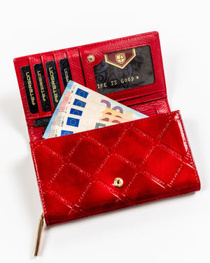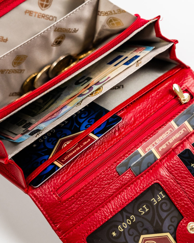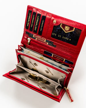 Šis elegantais sieviešu maks, kas izgatavots no īstas ādas, ir lieliska izvēle tiem, kas novērtē kvalitāti un stilu. Sarkanā krāsa piešķir tai izsmalcinātību, un lielais izmērs nodrošina, ka viss nepieciešamais būs ērti ievietojams.