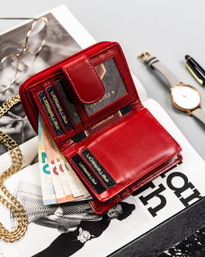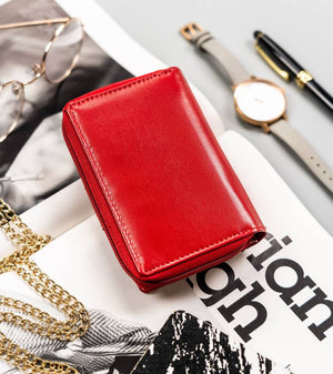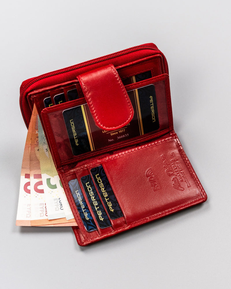 Šis elegantais sieviešu maks no Peterson kolekcijas ir izgatavots no augstas kvalitātes īstas ādas. Sarkanā krāsa piešķir ekskluzivitāti un stilu, savukārt vidējais izmērs nodrošina ērtības ikdienas lietošanā. Makā ir pietiekami daudz vietas kartēm un monētām, padarot to ideāli piemērotu gan ikdienas lietošanai, gan īpašiem gadījumiem.