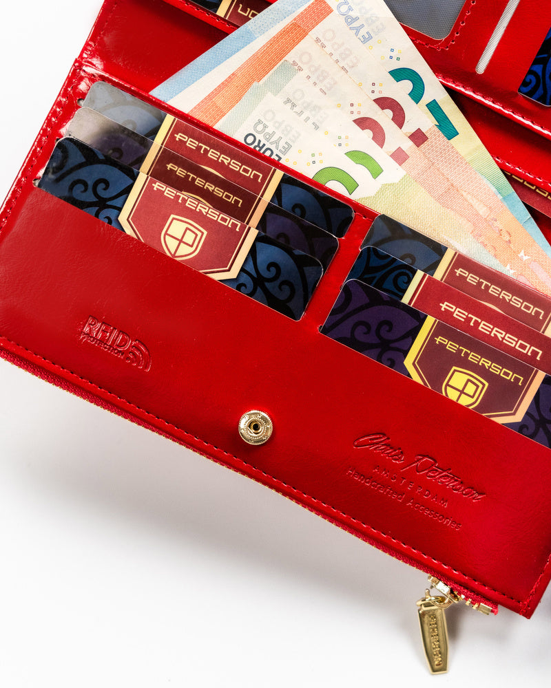 Šis elegantais un funkcionālais sieviešu maks no Peterson ir lieliska izvēle tiem, kas novērtē kvalitāti un stilu. Izgatavots no eko ādas, tas ne tikai izskatās grezni, bet arī ir videi draudzīgs. Sarkanā krāsa piešķir unikalitāti, un lielais izmērs nodrošina, ka viss nepieciešamais atrodas vienuviet.