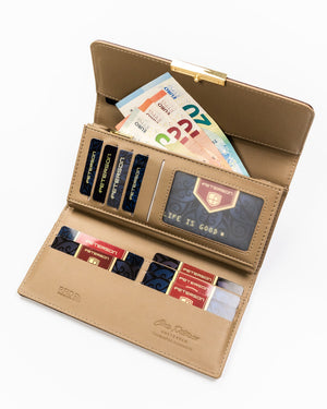 Šis elegantais sieviešu maks ir izgatavots no augstas kvalitātes eko ādas, kas nodrošina izturību un stilīgu izskatu. Bēšā krāsa piešķir makam neuzkrītošu un daudzpusīgu izskatu, tāpēc tas lieliski piestāvēs dažādiem apģērba stiliem.