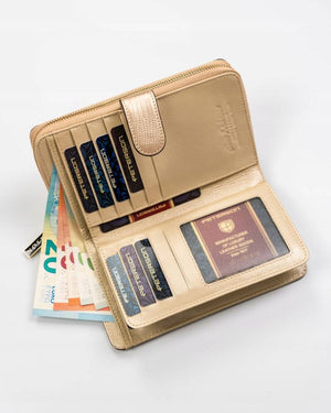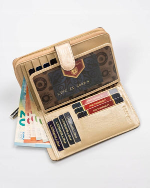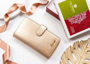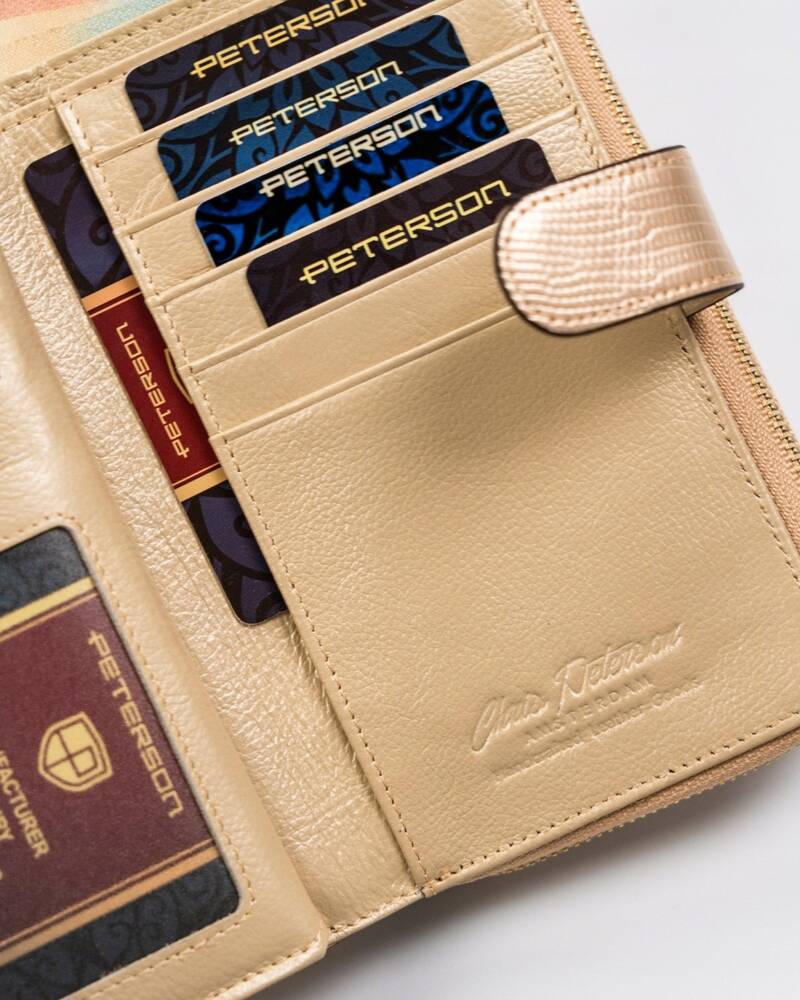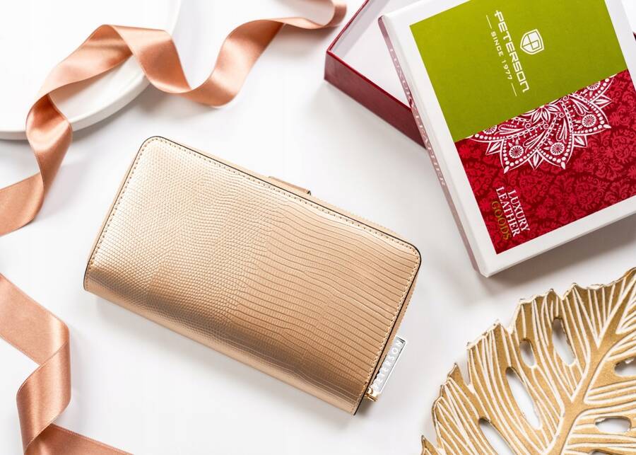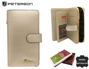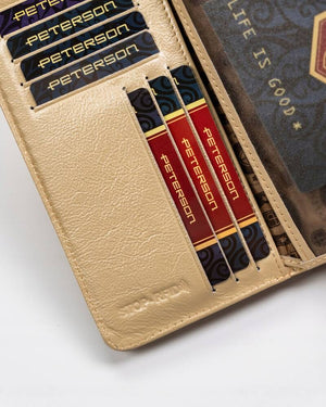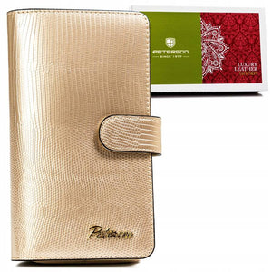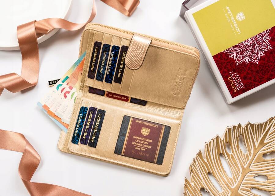 Šis elegantais sieviešu maks no Peterson kolekcijas ir lieliska izvēle tiem, kas novērtē kvalitāti un stilu. Izgatavots no īstas ādas, tas ne tikai izskatās grezni, bet arī ir izturīgs. Zelta krāsa piešķir ekskluzivitāti, un lielais izmērs nodrošina, ka visas jūsu kārtis un monētas būs glīti sakārtotas.