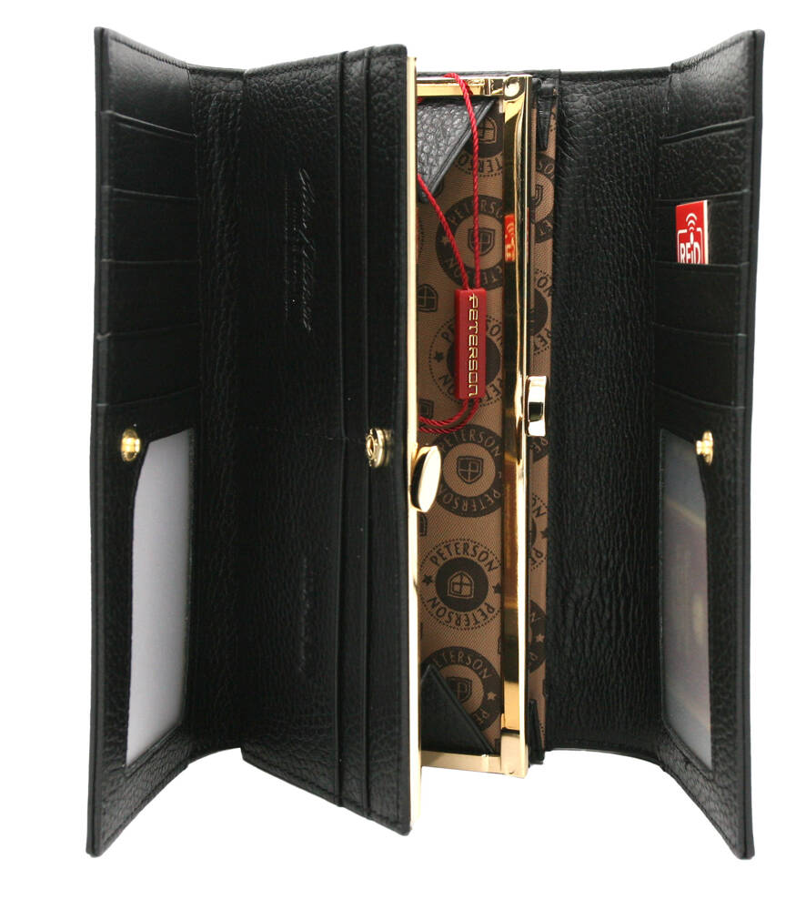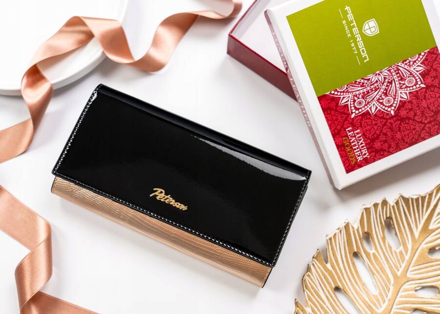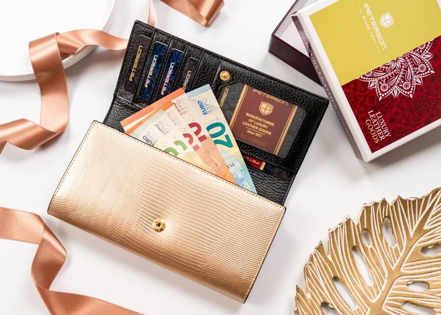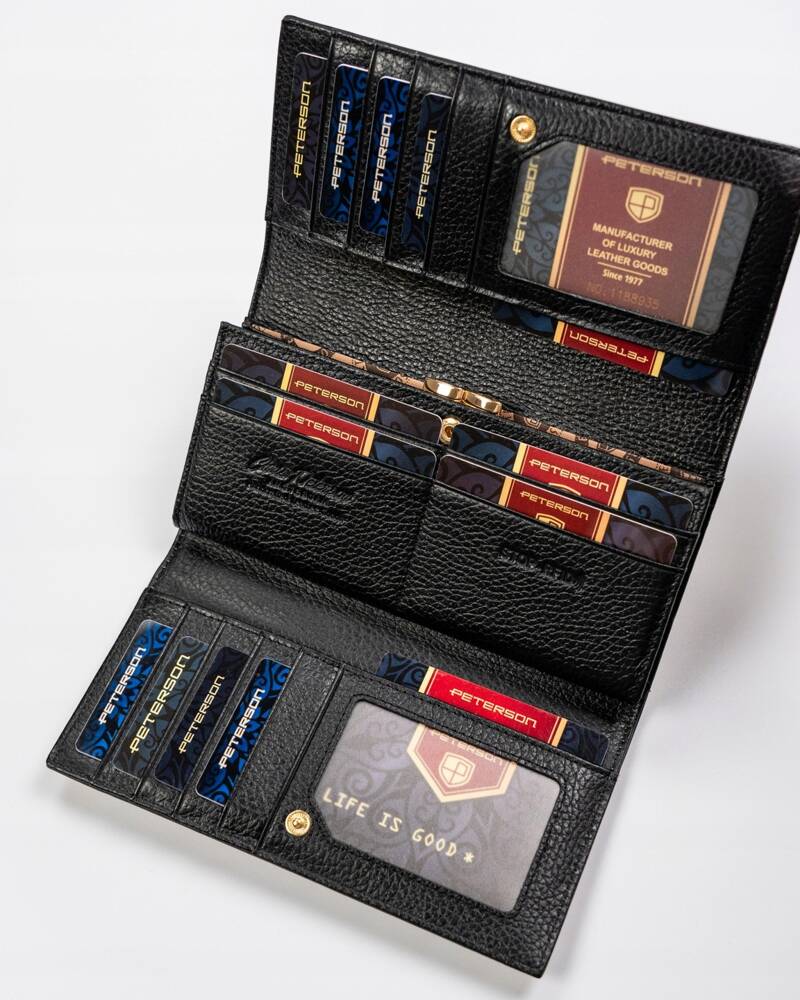 Šis elegantais un funkcionālais sieviešu maks no Peterson ir lieliska izvēle tiem, kas novērtē kvalitāti un stilu. Izgatavots no īstas ādas, tas ne tikai izskatās grezni, bet arī ir izturīgs. Melnā krāsa nodrošina daudzpusību, tāpēc maks labi piestāvēs jebkuram apģērbam. Lielais izmērs nodrošina, ka jums būs pietiekami daudz vietas visām jūsu kartēm un monētām.