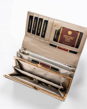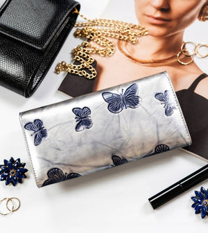 Šis elegantais un ietilpīgais sieviešu maks, kas izgatavots no īstas ādas, ir lieliska izvēle tiem, kas novērtē kvalitāti un funkcionalitāti. Sudraba krāsa piešķir modernitāti un stilu, un lielais izmērs nodrošina, ka viss nepieciešamais ir pa rokai.