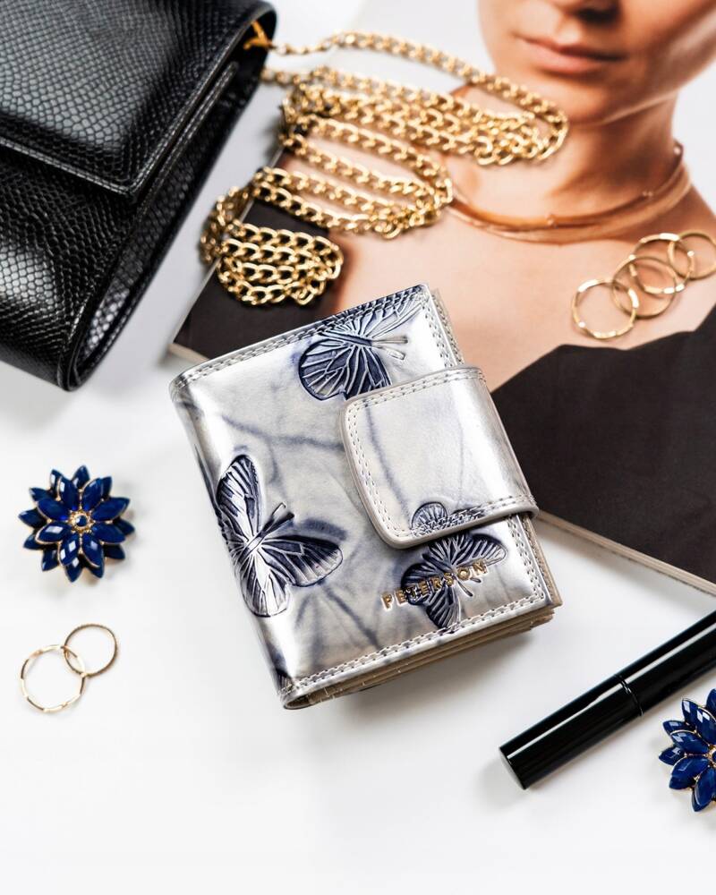 Šis elegantais sieviešu maks no Peterson kolekcijas ir izgatavots no augstas kvalitātes īstas ādas. Sudraba krāsa piešķir modernitāti un stilu, un kompaktais izmērs padara to ērtu nēsāšanai katru dienu. Makam ir vairāk nekā 10 karšu nodalījumi un atsevišķs nodalījums monētām, padarot to ārkārtīgi funkcionālu un praktisku.