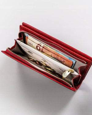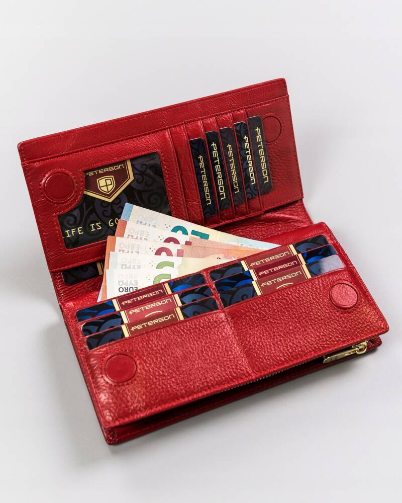 Šis elegantais sieviešu maks, kas izgatavots no īstas ādas, ir ne tikai stilīgs, bet arī funkcionāls. Ar vairāk nekā 10 karšu nodalījumiem un atsevišķu nodalījumu monētām tas ir lieliski piemērots ikdienas lietošanai. Sarkanā krāsa piešķir tam izteiksmību, un lielais izmērs nodrošina, ka viss nepieciešamais ir pa rokai.