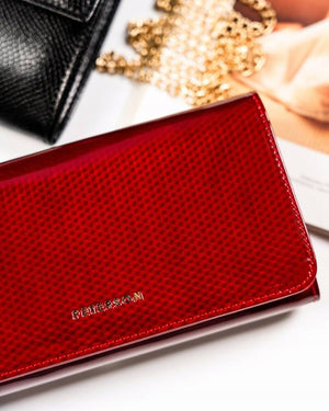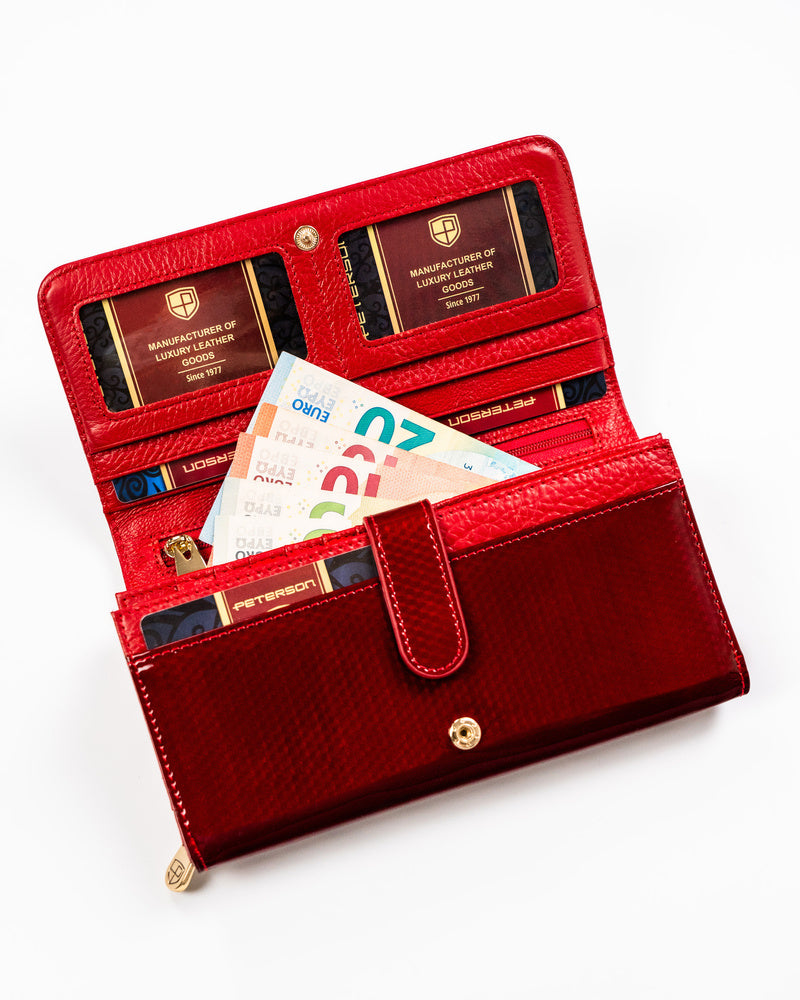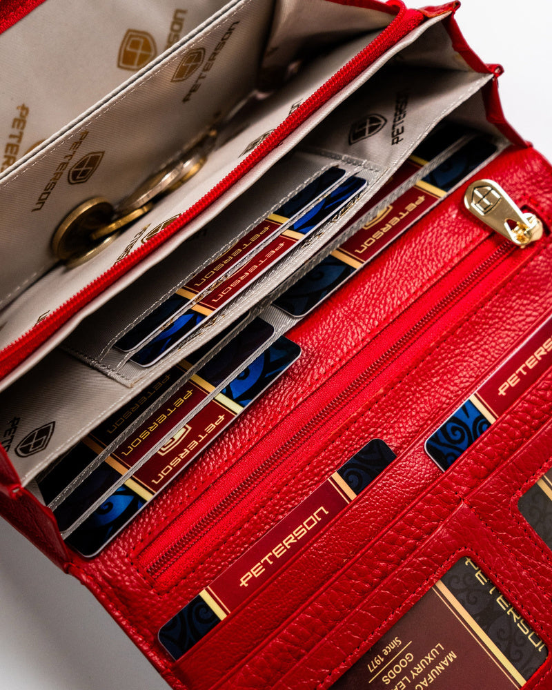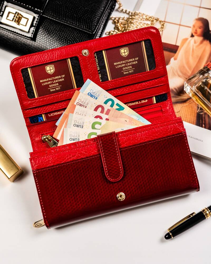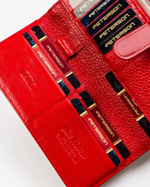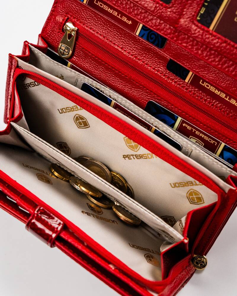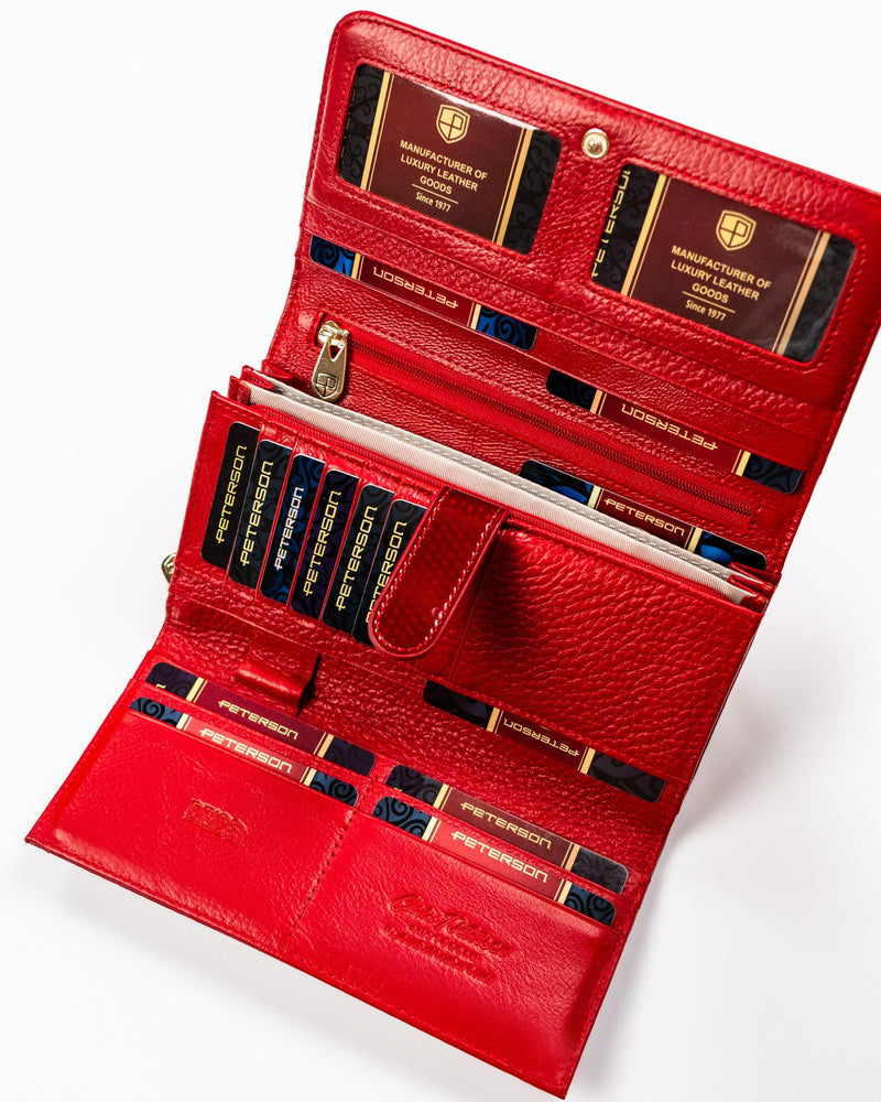 Šis elegantais un funkcionālais sieviešu maks no Peterson ir lieliska izvēle tiem, kas novērtē kvalitāti un stilu. Izgatavots no īstas ādas, tas ne tikai izskatās grezni, bet arī ir izturīgs. Sarkanā krāsa piešķir tai izsmalcinātību, un lielais izmērs nodrošina, ka visas jūsu kartes un monētas būs glīti sakārtotas.