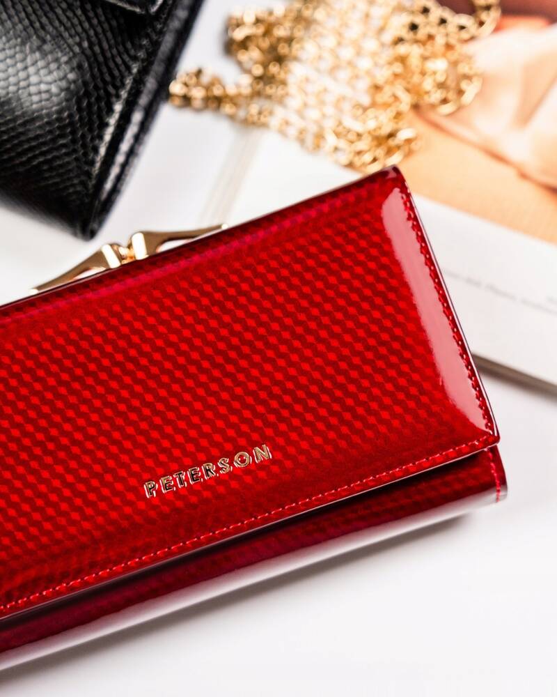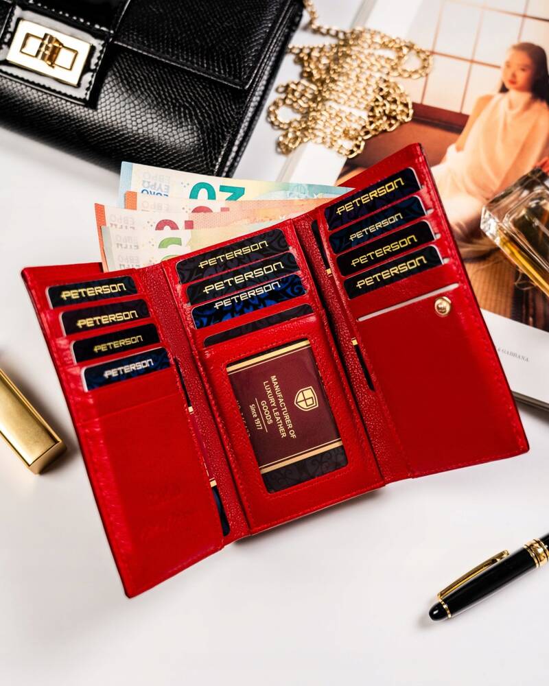 Šis elegantais sieviešu maks no Peterson kolekcijas ir izgatavots no augstas kvalitātes īstas ādas. Sarkanā krāsa piešķir ekskluzivitāti, un vidējais izmērs nodrošina ērtības ikdienas lietošanā. Makam ir vairāk nekā 10 karšu nodalījumi un atsevišķs nodalījums monētām, tāpēc viss būs kārtīgi sakārtots.